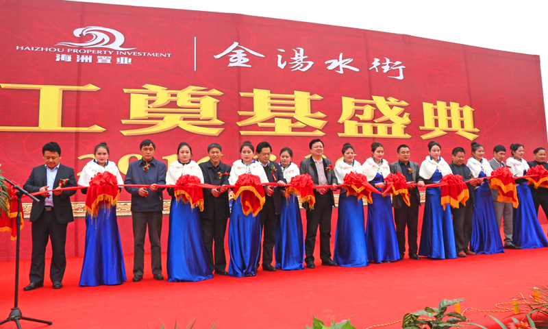 2016年3月26日上午,位于汤池镇南端,和平路商业街西侧的工业园区内,彩旗飘飘,礼炮齐鸣,花艳颜开,宾客如云。有华力建设承建的金汤水街项目奠基仪式隆重举行。来自市县镇有关领导,华力控股董事长常前仓,华力建设董事长王坤,庐江海洲房地产开发有限公司董事长柳杰、海洲投资置业有限公司总经理丁少永,合作单位代表及多家主流媒体出席了此次奠基仪式,共同见证这一重要时刻。