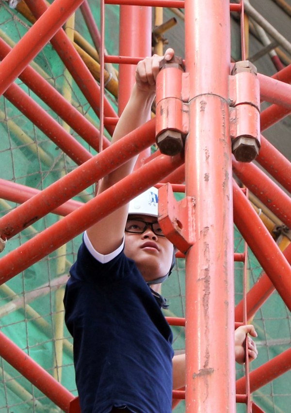5月5日上午,华力大型设备检查小组成员周昱材、李国锋,在安全处处长施旺龙的带领下,来到禹洲天玺项目,对现场的塔吊、人货电梯进行逐台检查,他们对现场细致检查后,又对资料进行核查,对检查的情况开会向项目办有关人员进行反馈,并下发《隐患整改通知单》,要求限期整改。华力建设每季度定期对在建工程的大型设备全部进行一次检查,这是今年以来第二次开展的大型设备的全面体检。