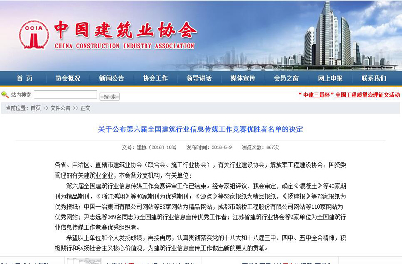 中国建筑业协会网站发布的消息