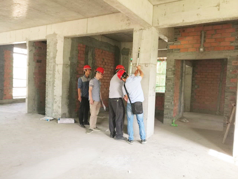 考核组对质量、安全、进度进行人员分工,根据公司拟定的质量、安全季度考核标准,逐条对照打分,查资料,看现场,该量化的实测实量,对于考评的情况汇总,并出具书面《质量安全整改通知》,现场召集项目相关人员进行反馈。对现场管理提出指导意见,对下一步的现场管理提出要求。