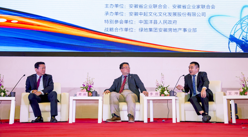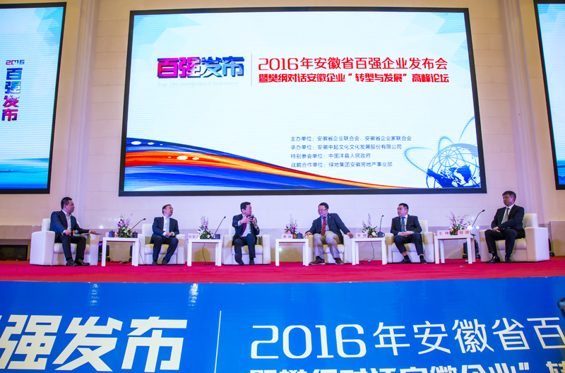 在其后的高峰论坛上,著名经济学家樊纲在会上对话皖企共论安徽企业转型与发展。他指出制造业和实业虽然这几年受到互联网经济的波动很大,但未来仍是实体经济主导中国经济。安徽企业在发展的模式上,要遵循市场规律,把创新作为引领发展的核心动力,把协调作为均衡发展的基本遵循。