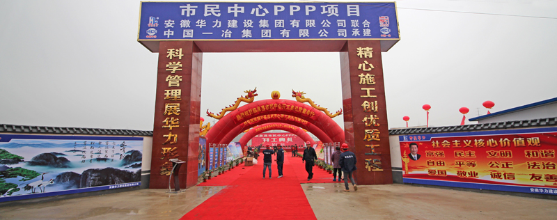 12月26日上午,由安徽民营企业安徽华力建设集团与囯家大型央企中国一冶集团联合体中标承建的全国示范PPP项目临泉县市民中心工程举行隆重的开工仪式。临泉县四大班子领导,华力控股董事长常前仓,华力建设董事长王坤、总经理王亮,中国一冶常务副总经理劳小云,合肥丰润工程咨询有限公司董事长舒友忠等出席开工仪式。县直有关单位负责人,城南街道办事处干部及社区干部,施工、监理单位有关人员参加开工仪式。