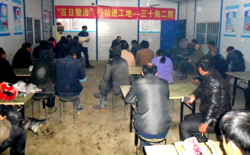 华力建设“百日整治行动”宣传单页发放到每个工人手中