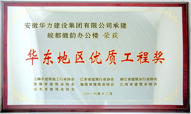 日前,从安徽省建筑业协会获悉,华力建设承建的皖都徽韵办公楼工程,喜获2016年度“华东地区优质工程奖”。