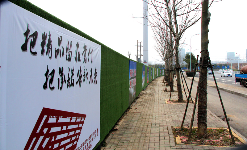 2000多米的外墙绿篱及宣传标语牌