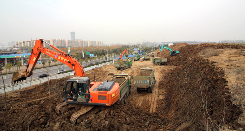 由华力建设承建的胡大郢污水处理厂工程,采用全地埋式设计,设计日处理规模10万立方米,采用全地埋式设计。厂址地势较高,土方外运量高达60万立方米,外运的难度非常大。3月10日下午,笔者来到该施工现场,工地外运渣土车,进进出出,一片繁忙的景象。