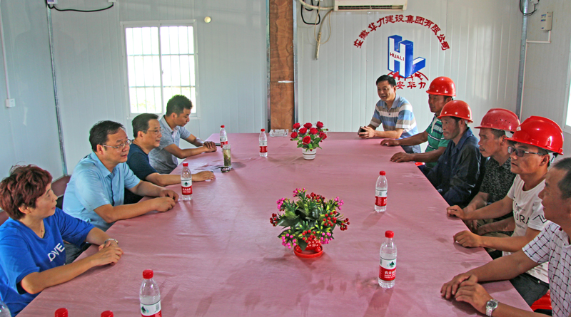 7月13日下午,肥西县建设局党组副书记、副局长王庆富,建设局副局长、纪检组长倪世元,县排水办主任周玉一行,带着防暑降温物品,深入由华力建设集团承建的肥西县中马排涝泵站项目工地,为坚守在高温下工作一线的工人送去清凉和关爱。集团党委书记杜荣平在项目现场代表华力员工向各位领导表示衷心感谢。