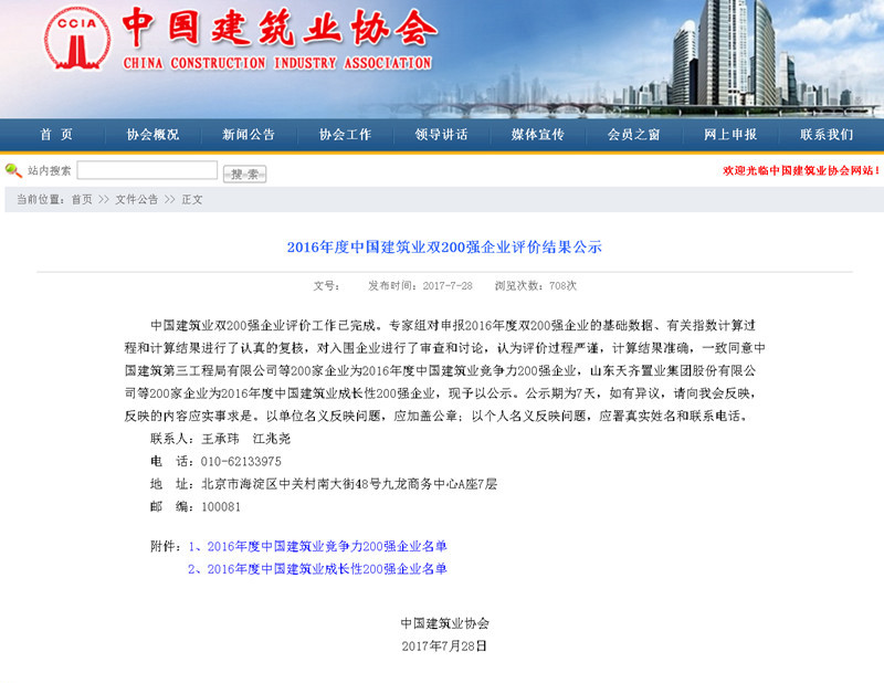近日,中国建筑业协会完成了对中国建筑业双200强企业的评价工作。华力集团荣膺2016年度中国建筑业竞争力200强第123位,较2015年度排名上升37位。