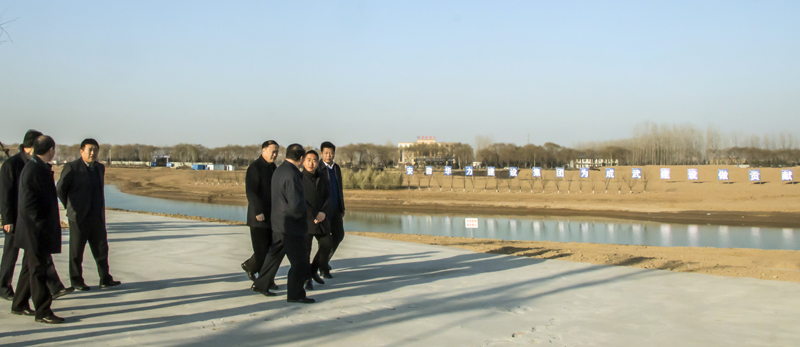 施东峰在华力承建的成武县北部城区项目现场——乐成河观景平台,对项目建设总体情况进行了介绍,并对照展板上在建的石化小区、烟庄新村棚户区改造、大班额七所学校建设、北部新城基础设施建设水系、道路PPP项目等一一进行了讲解,特别是建设过程中重视环境保护方面作了重点介绍。