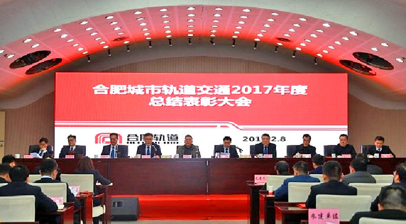2018年2月8日下午,合肥城市轨道交通2017年度总结表彰大会在市轨道公司419会议厅举行,会议由轨道公司党委书记、执行董事陈华主持,市政府副秘书长王道荣出席会议并讲话,市纪检专项工作组,市安监局派驻组,市审计局跟踪审计派驻组,市轨道公司领导班子、各部门、(分)子公司中层及以上人员,轨道交通在建工程施工、监理、设计等参建单位负责人,受表彰的先进集体、先进个人参加会议。