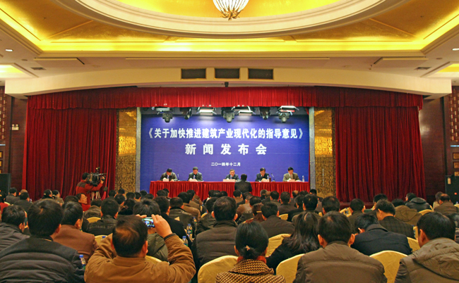 2014年12月26日,安徽省加快推进建筑产业现代化工作新闻发布会在合肥举行,省住房和城乡建设厅侯淅珉厅长主持发布会,财政厅副厅长严一民,住建厅副厅长李建、仲亚平、财政厅陈维光处长出席会议,并回答了记者的提问。省市有关主流媒体、各市住房和城乡建设主管部门、房地产管理局,建筑产业现代化示范基地、科研单位参加了会议。