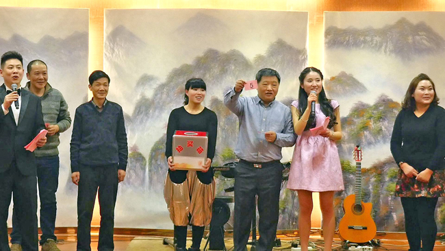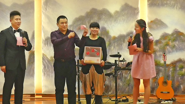 作为联欢会重头戏的抽奖活动自然是必不可少!当晚共有三轮抽奖,级别为一、二、三等奖,共有9名获奖者。献歌与游戏参与者则有小礼品赠送,获奖比例高达60%。