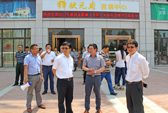 7月26日,国家发改委城市中心研究员冯奎、军事医学科学院教授潘祥祥、安徽省皖北发展研究院中心主任陈勤学、新浪安徽总经理胡静等参加2015新浪金麒麟(阜阳)论坛的部分嘉宾,就推进新型城镇化发展等问题到临泉进行参观考察,并重点考察全县学府名宅“状元府”项目。临泉县委常委、常务副县长县段相霖、县委常委、县委办主任章颜青、县委常委、宣传部长魏艾等县领导陪同考察。状元府开发项目总经理董策俊接待了考察团一行。