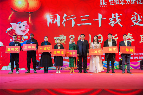 On the evening of January 20th, Huali Group's "Thirty Years of Peering, Transforming and Creating the Future" Spring Festival Gala was held at the Kaiyuan Hotel on the expressway. Leaders from provinces, cities, districts, strategic partners, and long-term friendly units, as well as the board of directors of Huali Holdings, the group's party committee, trade union, and Communist Youth League organization, all employees, retired senior employees, and outstanding representatives of Huali Group's four major sectors of construction, real estate, overseas, and design, and its subsidiaries, gathered together to sing and dance, sharing the joy of 2018 and looking forward to a beautiful vision for 2019.