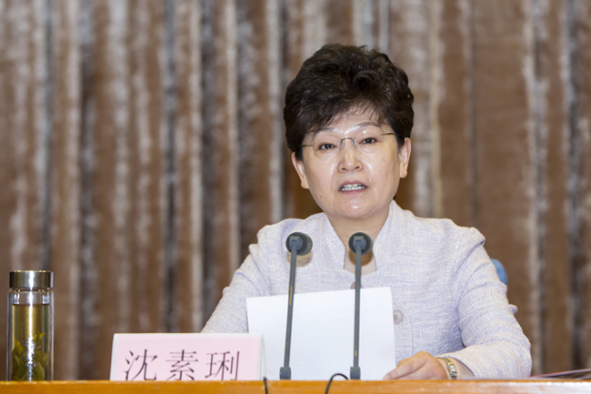 省委常委、省统战部长、省光彩促进会会长沈素琍在大会上讲话