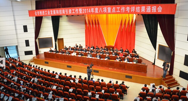 市委书记孙云飞作了重要讲话,市长毕小彬主持会议并就贯彻落实会议精神提出了要求。市委常委、常务副市长付新安宣读了市委、市政府关于2014年度全市招商引资等八项重点工作考评结果的通报。市委常委、副市长束学龙,副市长王琦分别就工业经济、招商引资工作作了总结和全面安排部署。