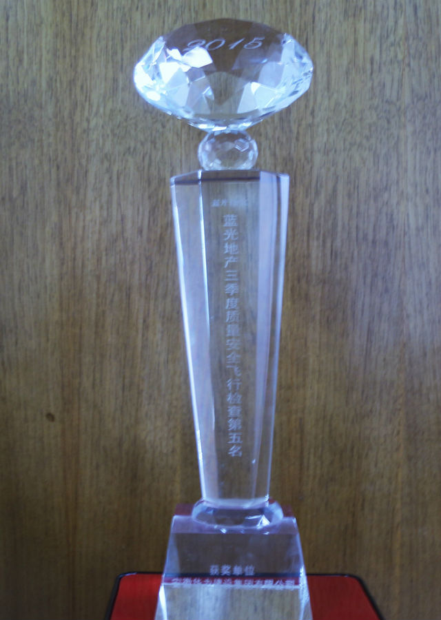 2015年10月24日,蓝光地产2015年三季度质量安全飞行检查总结大会在蓝光城都总部隆重举行。华力承建的禹州中心项目,在蓝光近百个项目中,脱颖而出,再次荣获“第五名”的成绩。总经理王亮参加了大会,并接受蓝光项目管理中心总经理李飞颁发的奖杯和10万元奖金。