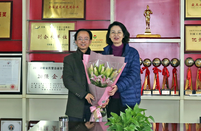 在华力大厦九楼,崔嵚副区长代表区委、区政府,向吴银国总工送上鲜花和1000元慰问金,并给予新春的问候。崔嵚副区长指出,人才为生产力的第一要素,得人才者得天下。为进一步拓宽我区优秀人才建言献策的渠道,激发优秀人才的创新创业热情,更好地发挥专家人才在打造“魅力蜀山、首要之区”,建设“转型发展先行区、统筹城乡示范区、民生建设先进区”进程中的引领带动作用,我们建立了区领导联系专家制度,通过联系制度的落实,及时保持与专家之间的良性互动,倾听专家的意见和建议,解决专家实际问题,使专家们更好地为蜀山的经济发展做出贡献。