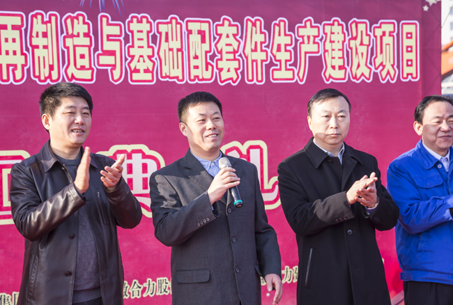 开工仪式上,合力股份公司营销总部常务副总经理李永凯,中机意园工程科技有限公司董事长乔广海分别致辞,表示该工程是安徽合力股份有限公司的一项重点工程,开工建设意义重大,影响深远。合力股份公司将以此项目建设为契机,引进先进的再造技术设备,探讨再制造的工艺规范,建立行业标准,形成工业车辆“新设备——二手设备 ——再制造——新设备”的循环经济模式,提升我国工业车辆的装备再制造行业的整体实力,希望参加各方主体,同心协力,又快又好完成施工任务。