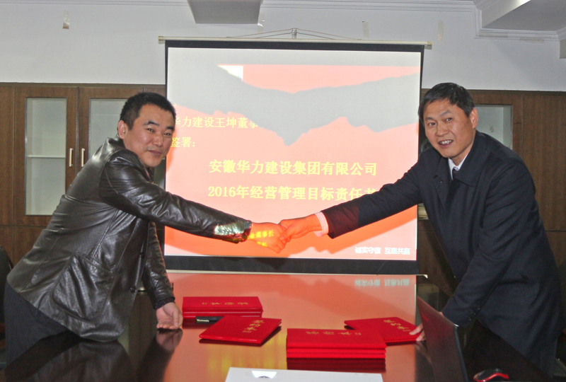 常前仓与王坤签约《安徽华力建设集团有限公司2016年经营管理目标责任书》