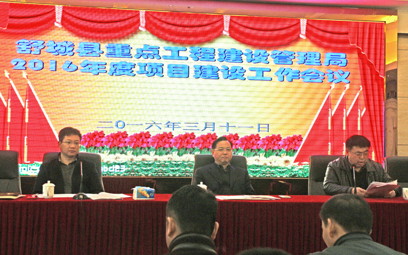 副局长梅申勇介绍了2016年度的重点工程总体实施计划,详细解读了60项重点工程的位置、规模、进度、推进时间表,总投资70多亿,今年投资近50亿,表明了舒城县的重点工程建设逆势上扬、如火如荼的新局面。梅局长还提出了今年的目标任务、工作重点和具体措施。