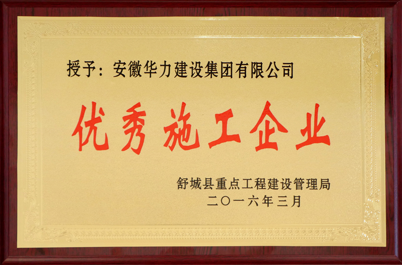 “优秀施工企业”奖牌